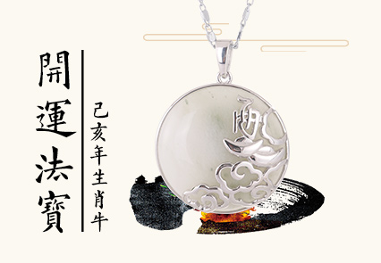 “二黑”星五行属土,群土克水争财,故不能再以土助之、以火生之、以木逆之, 当以金泄耗其土本性,削弱其凶性。本年生肖牛有与太岁相克争斗之嫌,采用酉金,一来可以化解“二黑”煞星的土气,二来可使生肖牛与太岁化相克为相生,丑土生酉金,酉金生亥水,一脉相生,秀气流行。同时,酉金为生肖牛的食神星及三合贵人,为食禄、 福气,又可生财,增加生肖牛的求财机遇,配上象征财富的财喜元宝等元素,进一步增加了属牛人全年的财富运势,化阻力为助力,引出流年太岁的财星力量,生肖牛福主长期佩戴,可增强全年的财喜之运。