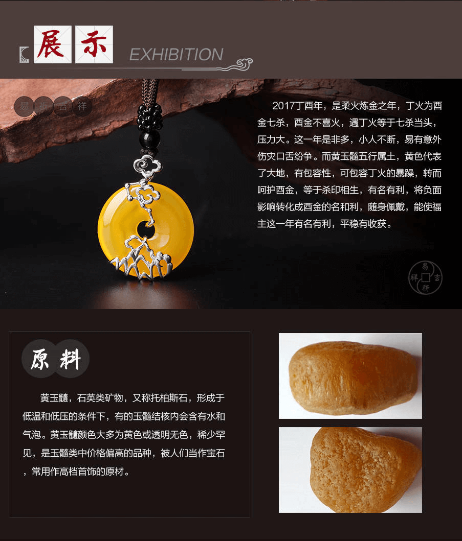 易祈吉祥2017年十二生肖吉祥物挂件,设计独具匠心,每一处细节处理,都以“助旺福主”为重心。黄玉髓与银边浑然一体,互相映衬互为助力,福主长久佩戴,能催旺福主运势,全年如意吉祥。